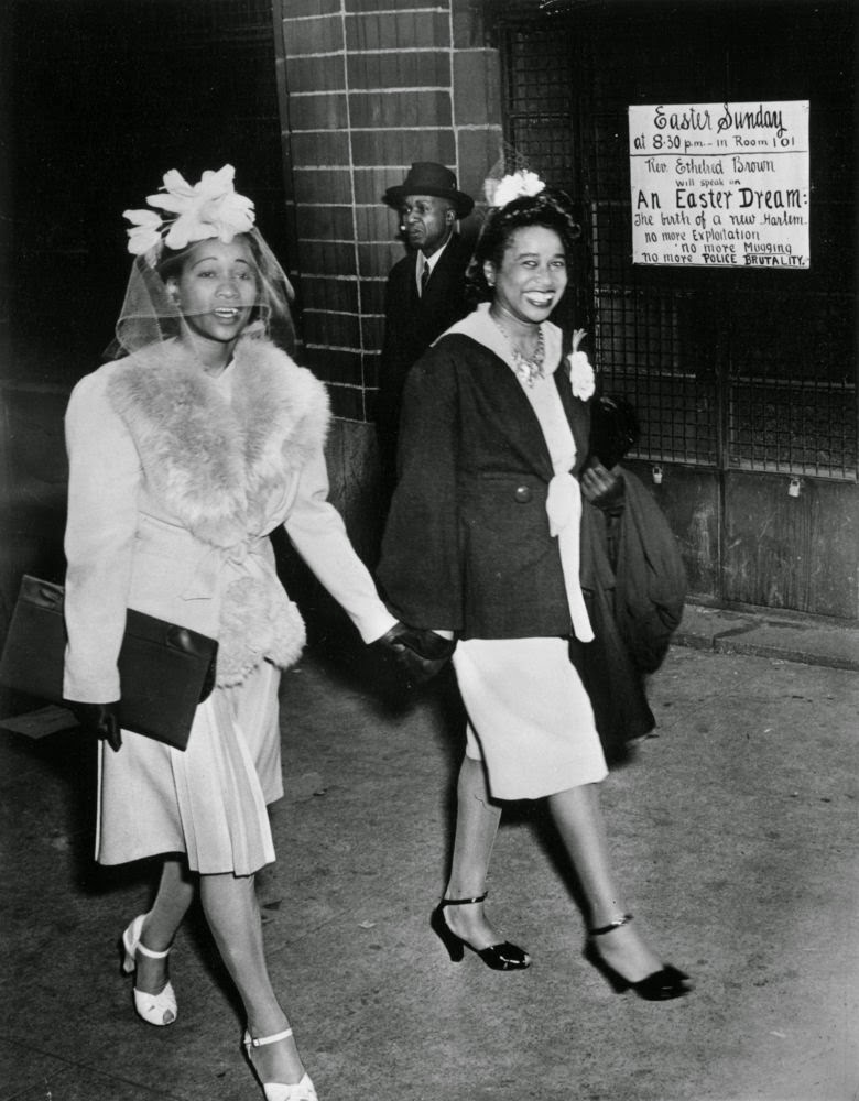 | Two women leaving church in Harlem on Easter Sunday in 1943, wearing their Sunday best. (Getty Images) |