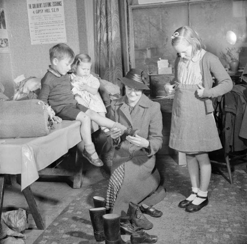 Women’s voluntary service run Children’s Clothing Exchange, Norwood, London, 1943. |