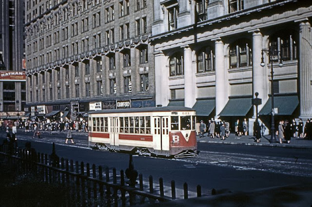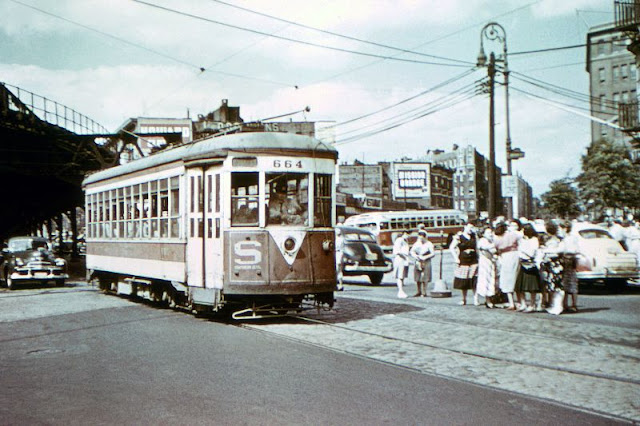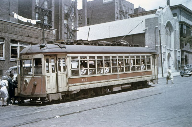 A rare color photo collection from David Pirmann that shows streetcar system in New York from between the 1930s and 1950s.