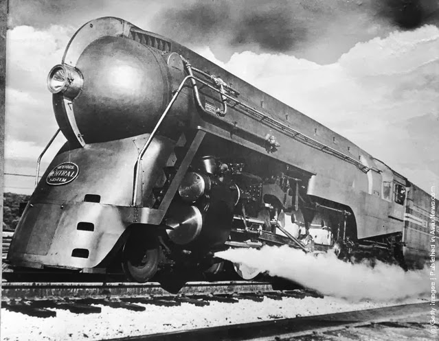 | The new streamlined 20th Century Ltd. locomotive, designed by Henry Dreyfuss, which runs between New York and Chicago. (Photo by Hulton Archive/Getty Images). 23rd June 1938 |