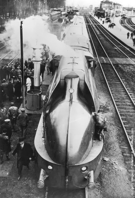 | France’s latest streamlined train seen from above to emphasise the striking design. (Photo by Topical Press Agency/Getty Images). April 1935 |