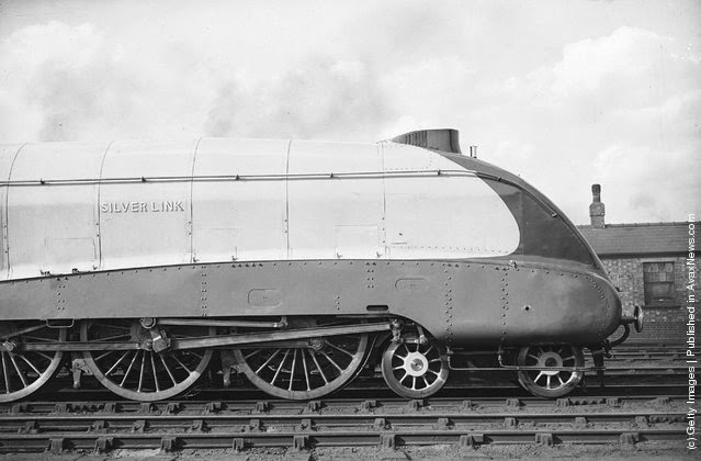 | Silver Link, the new LNER streamlined engine, at King’s Cross Station in London, September 1935. (Photo by Fox Photos/Hulton Archive/Getty Images) |