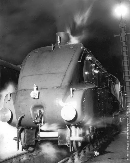 | The sleek Coronation Scot 4-6-8 locomotive at Crewe. (Photo by Fox Photos/Getty Images). May 1937 |