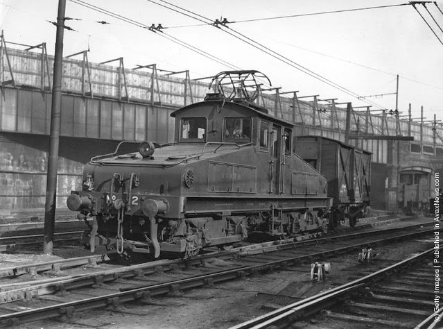 | An electric locomotive on the Newcastle Quayside. (Photo by Hulton Archive/Getty Images). Circa 1924 |