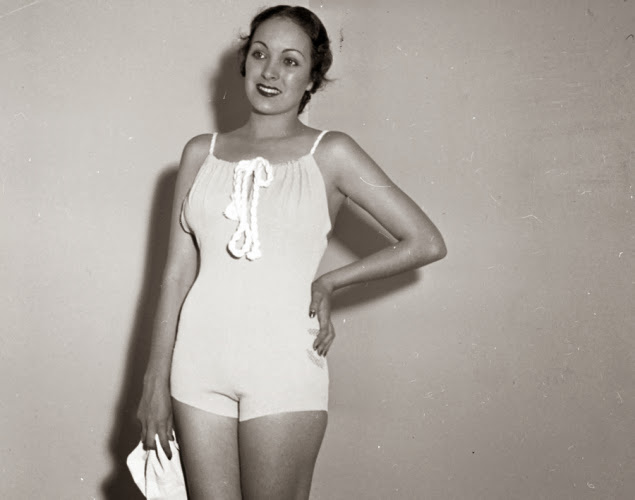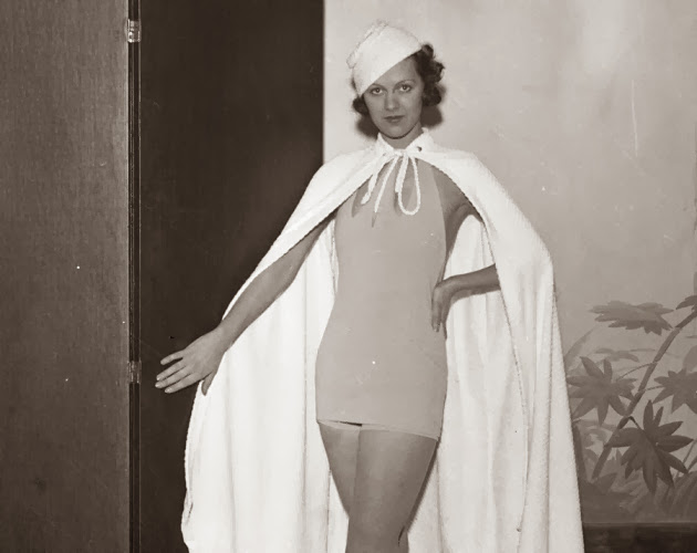 | Bathing suits were definitely more conservative back in 1935! Here, model Priscilla Lawson stands pretty in a rubber swimsuit. |