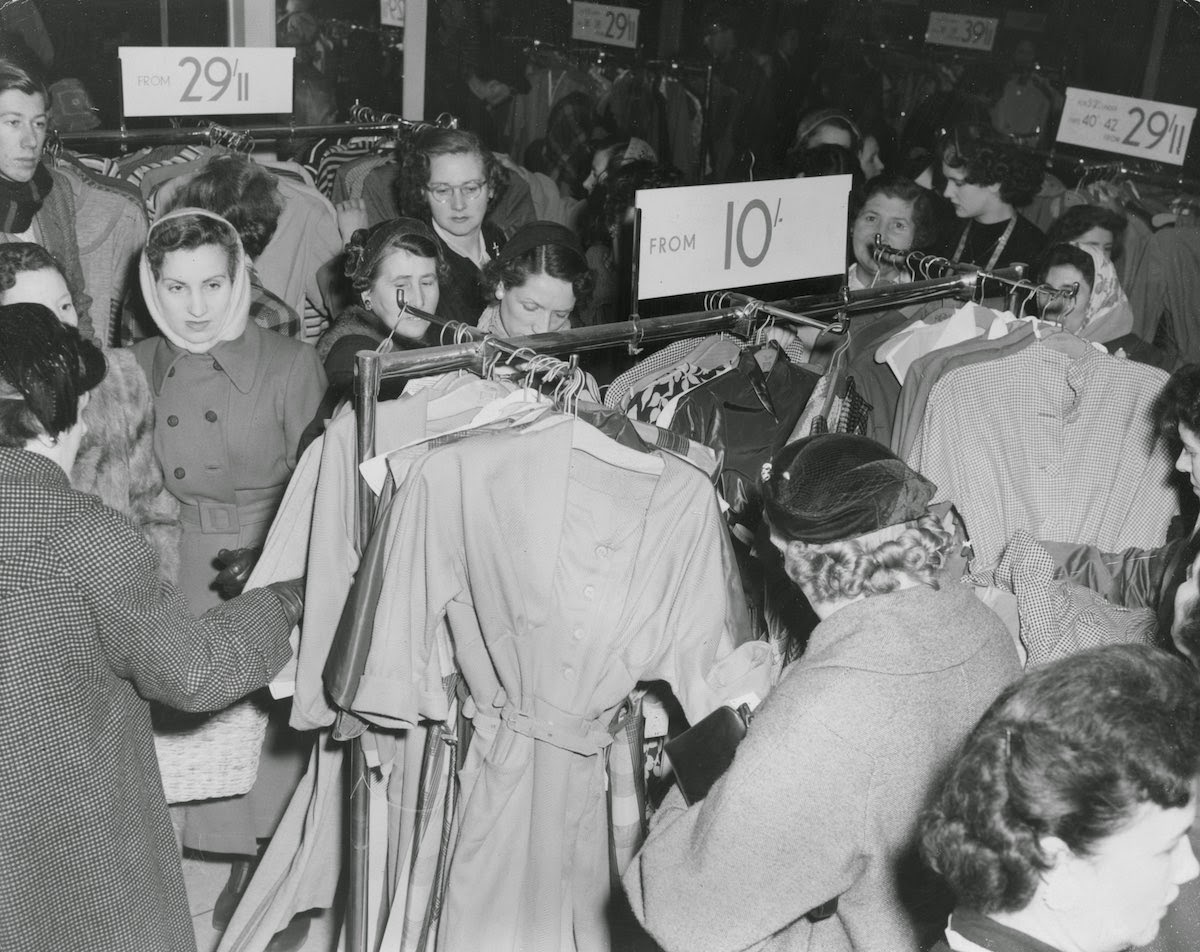 January 1950. Bargain hunters in a London store shop during the January sales. IMAGE: HAYWOOD MAGEE/PICTURE POST/GETTY IMAGES |
