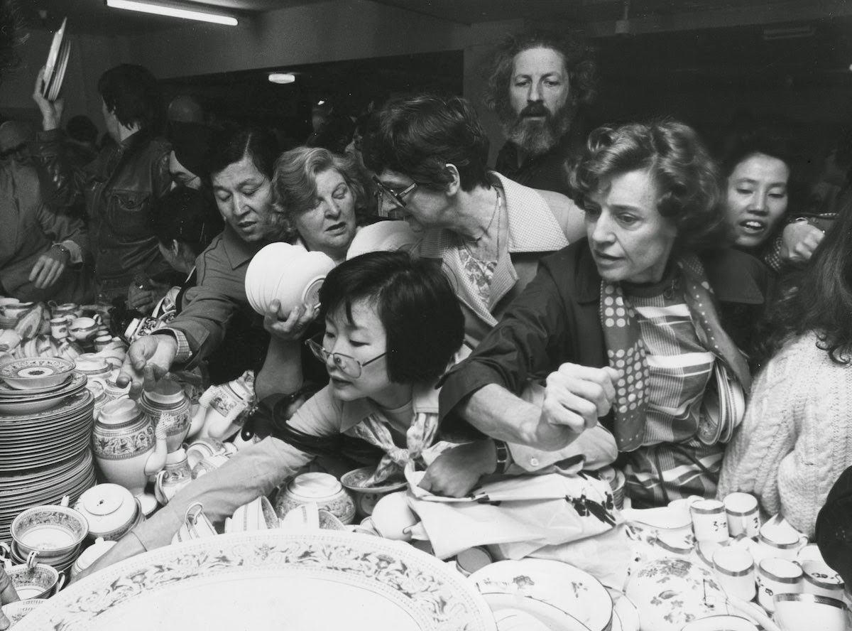 c. 1965. Bargain hunters attack a display of china at Selfridges department store in London. IMAGE: EVENING STANDARD/GETTY IMAGES |