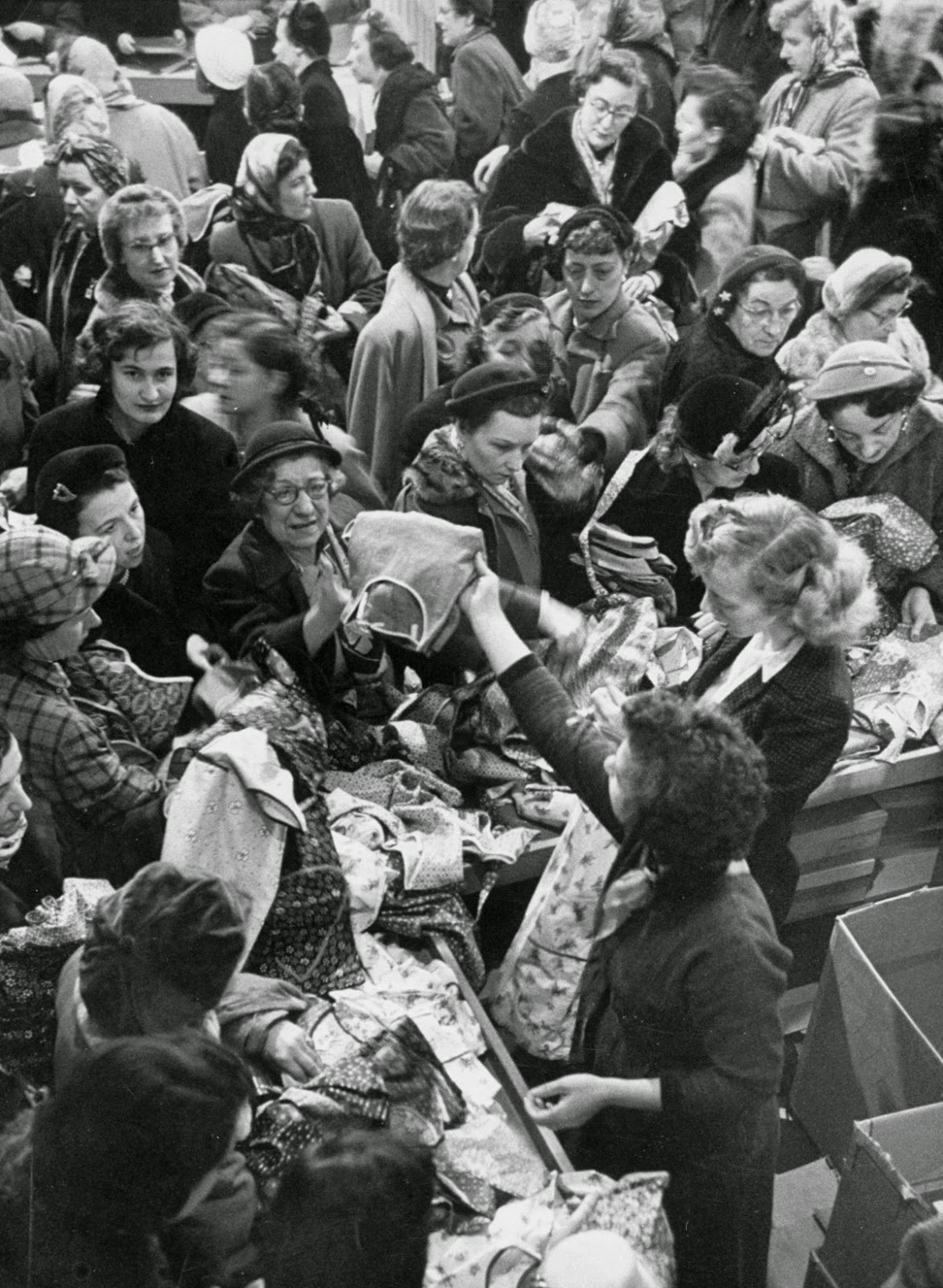 Jan. 3, 1955. The sale at the C&A store in Marble Arch, London. IMAGE: GEORGE W. HALES/FOX PHOTOS/GETTY IMAGES |