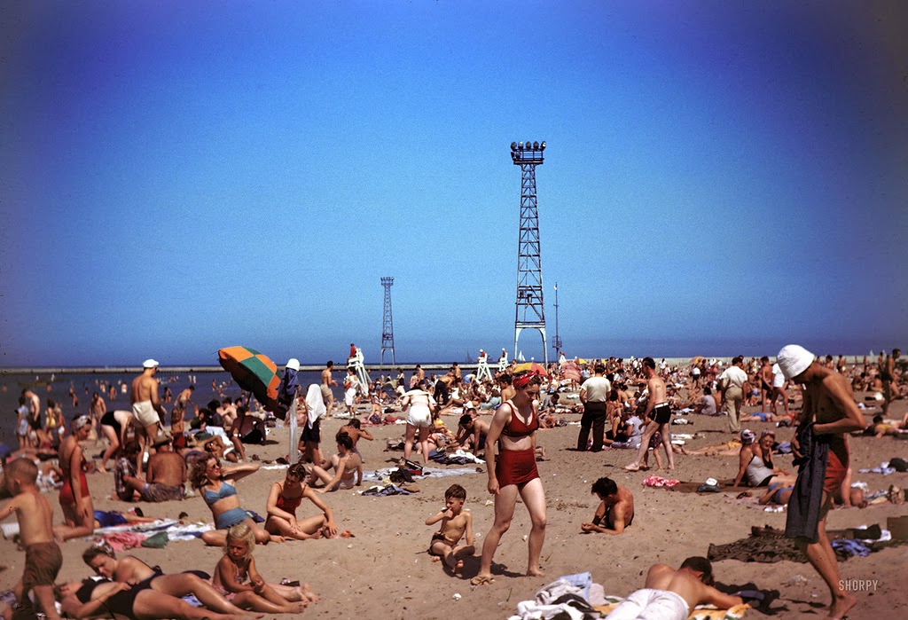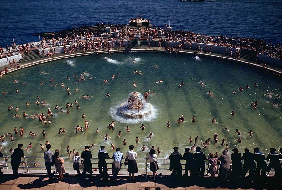 | People bathing in the salt water pool in the English Devon, 1946. |