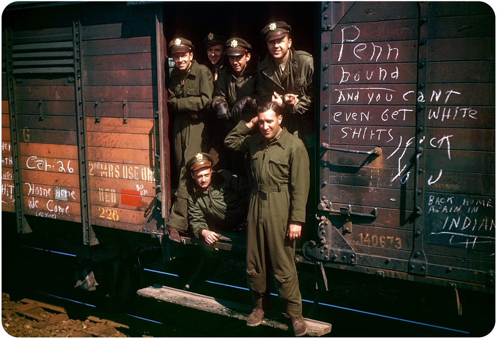 | In this trailer ride mustering of the U.S. Air Force, 1946. |