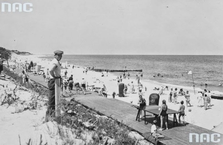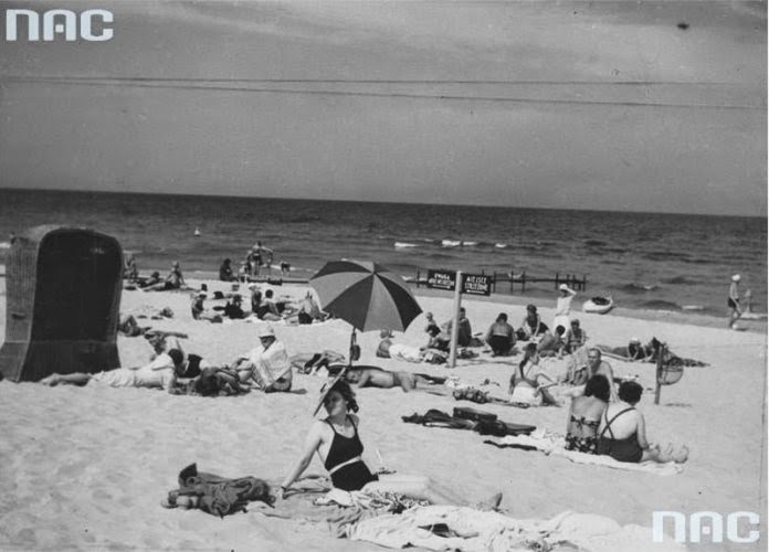 Bałtycka plaża z lat 30. XX wieku. Fot. Narodowe Archiwum Cyfrowe |