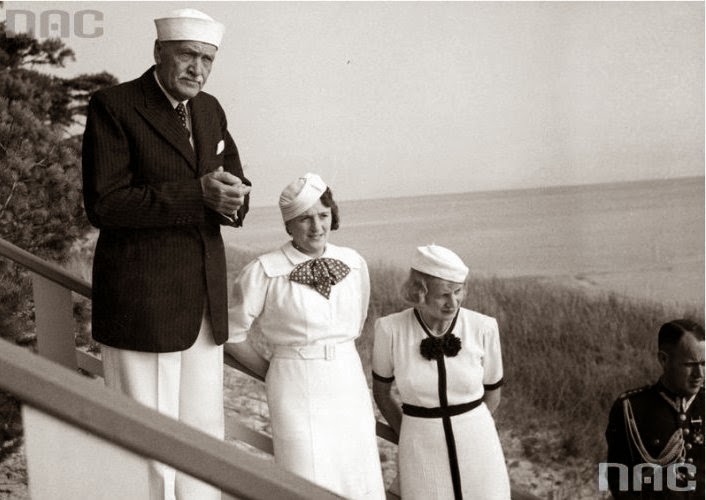 Prezydent RP Ignacy Mościcki z żoną Marią (druga od lewej), córką Heleny Bobkowskiej (druga od prawej) i kpt. Zand. John Huber na plaży, lipiec 1937. Fot. Witold Pickle / Narodowe Archiwum Cyfrowe |