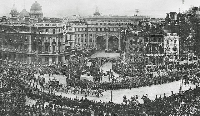 | This is Thursday 22nd June 1911 and King George V is returning to Buckingham Palace after his Coronation at Westminster Abbey. |