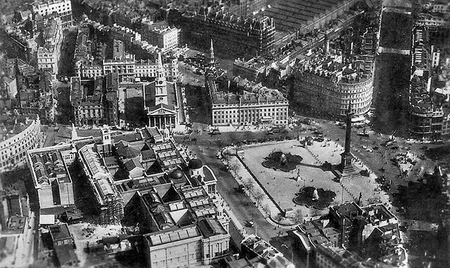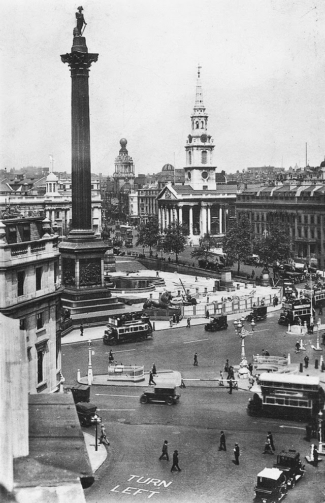 | A late 1930s view of Trafalgar Square taken from the Dent & Co. building which was on the corner of Cockspur Street and Spring Gardens. |