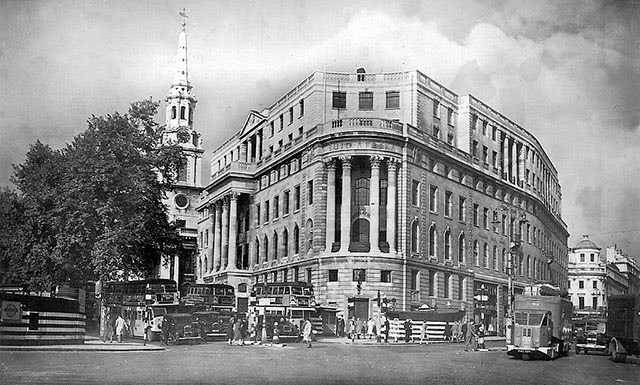 A late 1930s view of Trafalgar Square taken from the Dent & Co. building which was on the corner of Cockspur Street and Spring Gardens. |
